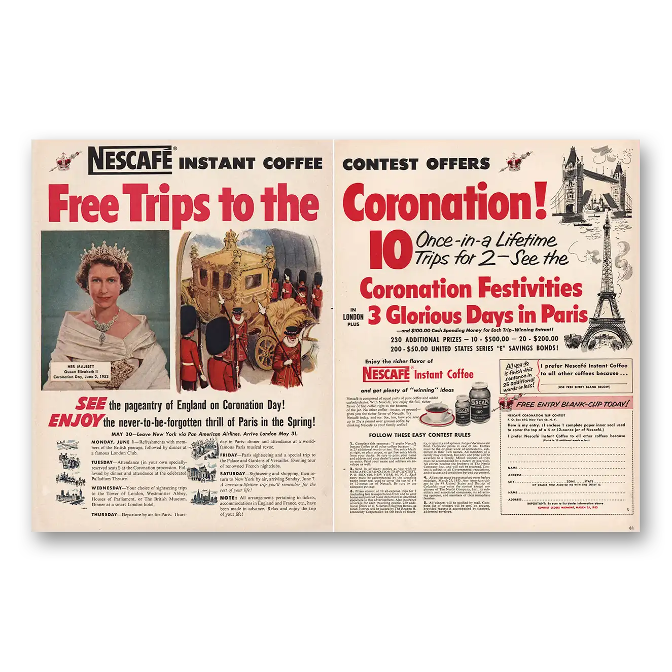 1953 Nescafe Coffee Print Ad | Queen Elizabeth