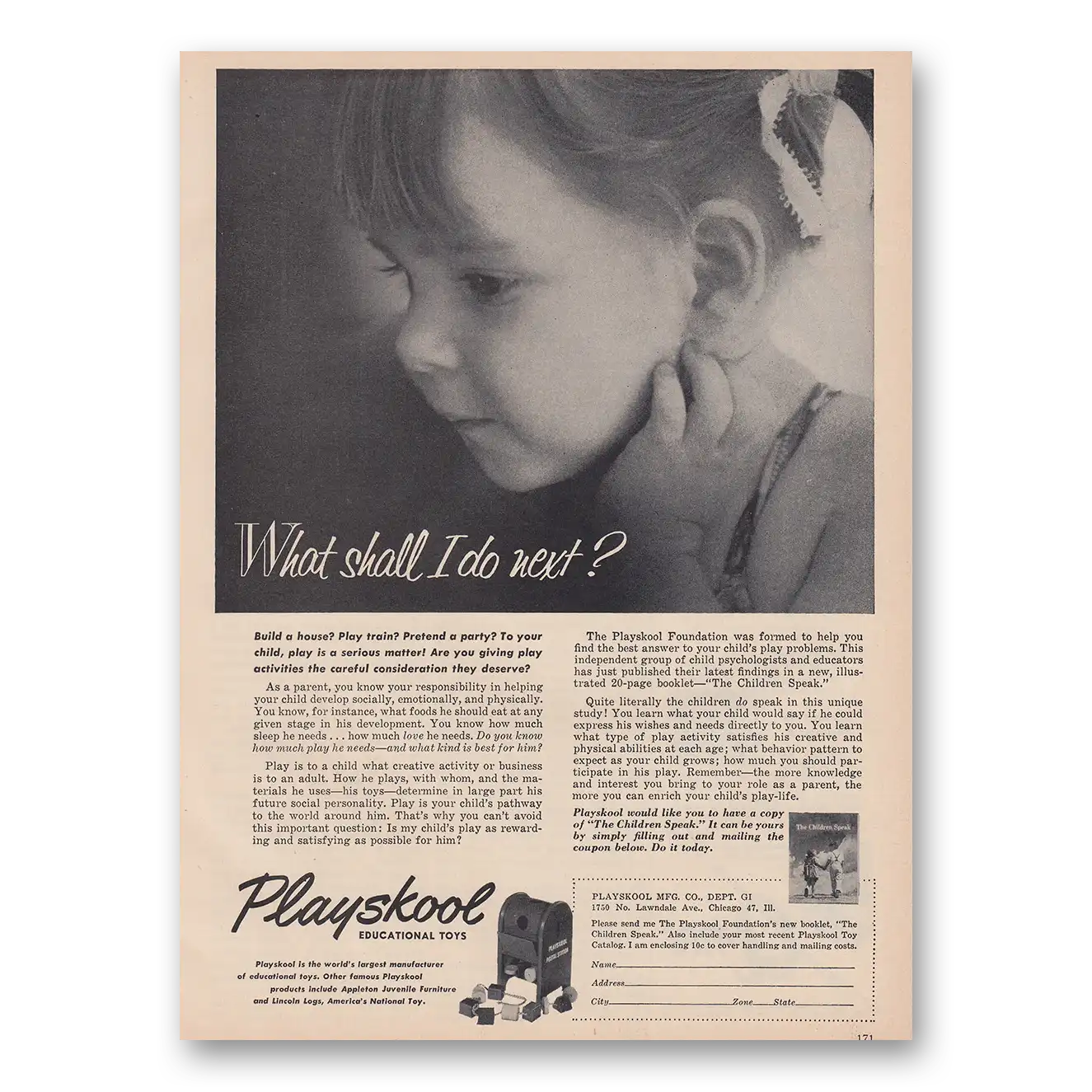 1953 Playskool Print Ad | What Shall I Do