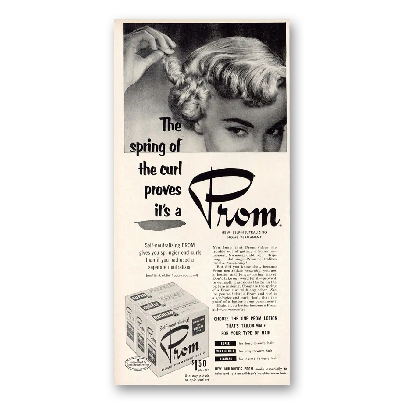1953 Prom Home Permanent Print Ad | Spring Curl