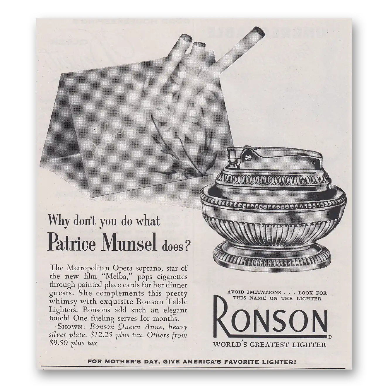 1953 Ronson Lighters Print Ad | Patrice Munsel