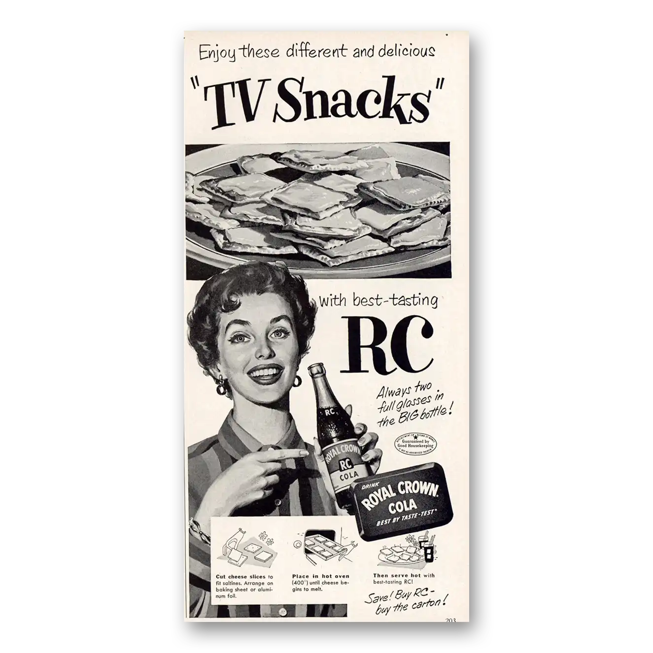 1953 Royal Crown Cola Print Ad | Tv Snacks