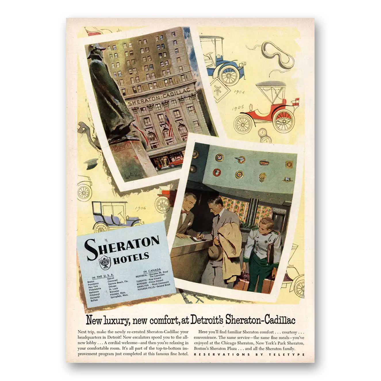 1953 Sheraton Cadillac Hotel Print Ad | New Luxury