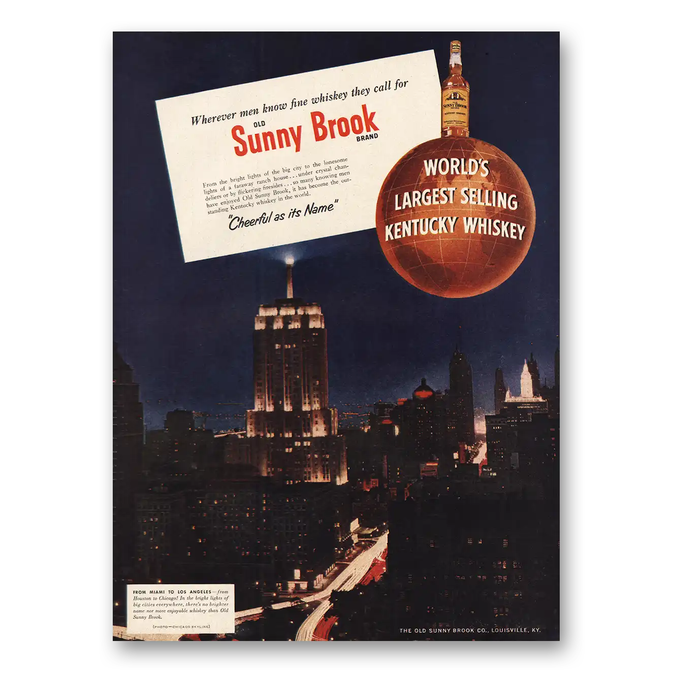 1953 Sunny Brook Whiskey Print Ad | Miami To Los Angeles