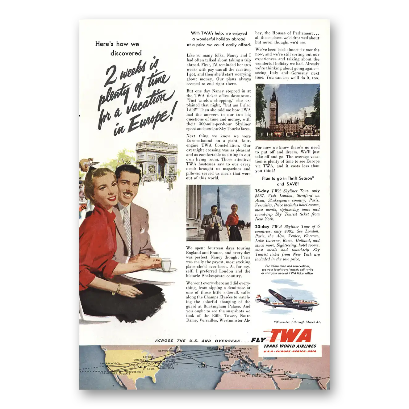 1953 TWA Airlines Print Ad | Season Fares1953 TWA Airlines Print Ad | Season Fares