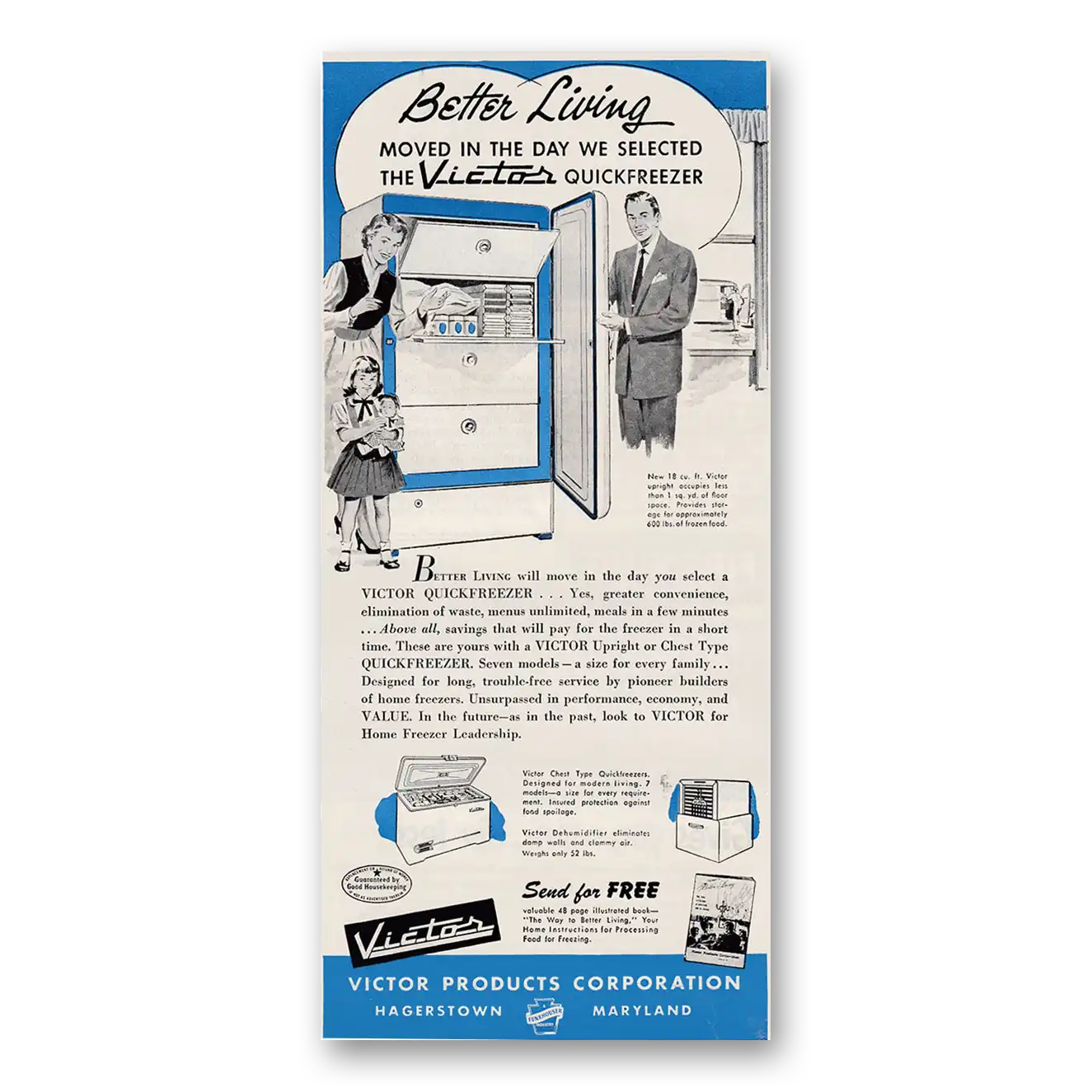 This is an original 1953 Victor Quickfreezer print ad published by Victor Products.