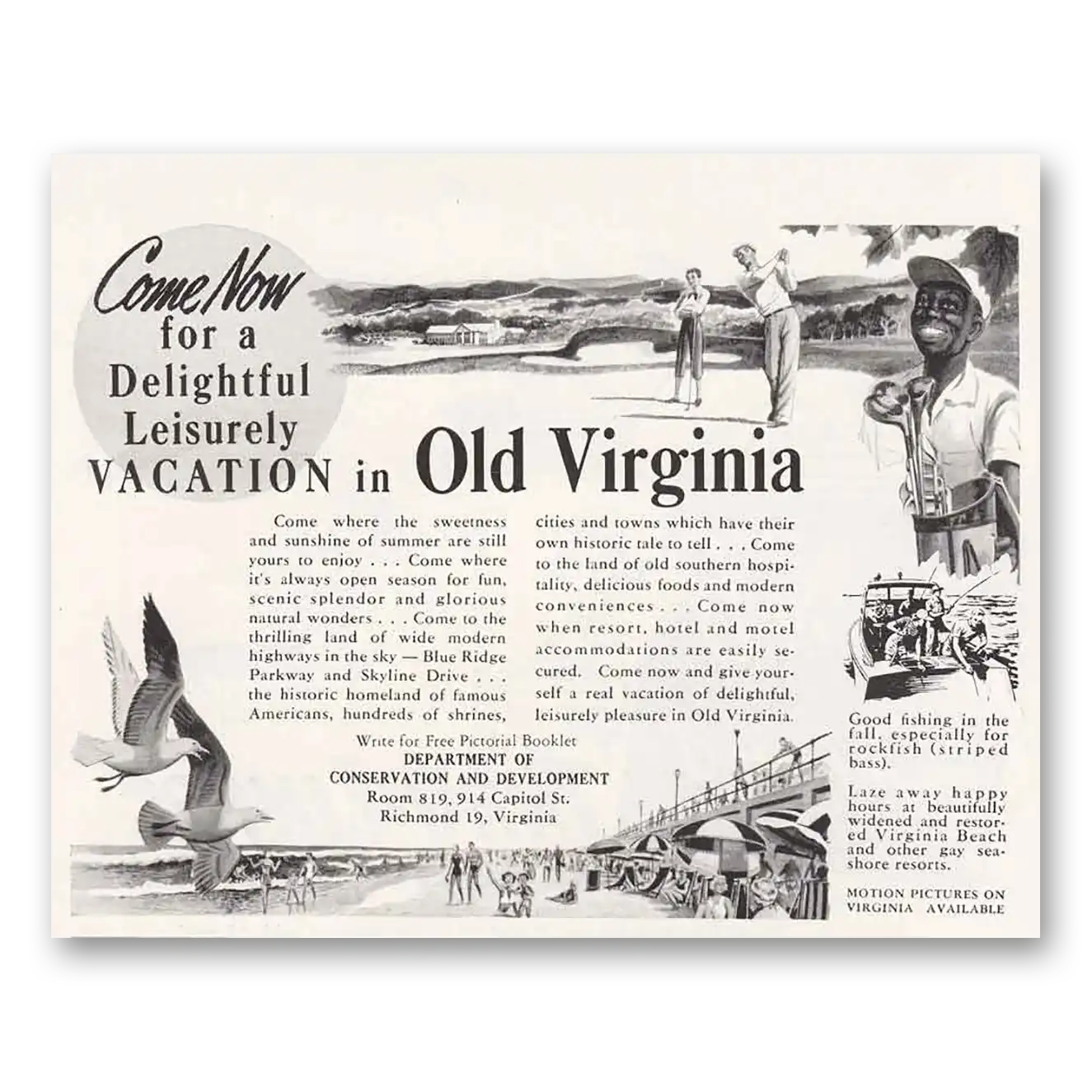 1953 Virginia Print Ad | Leisurely Vacation