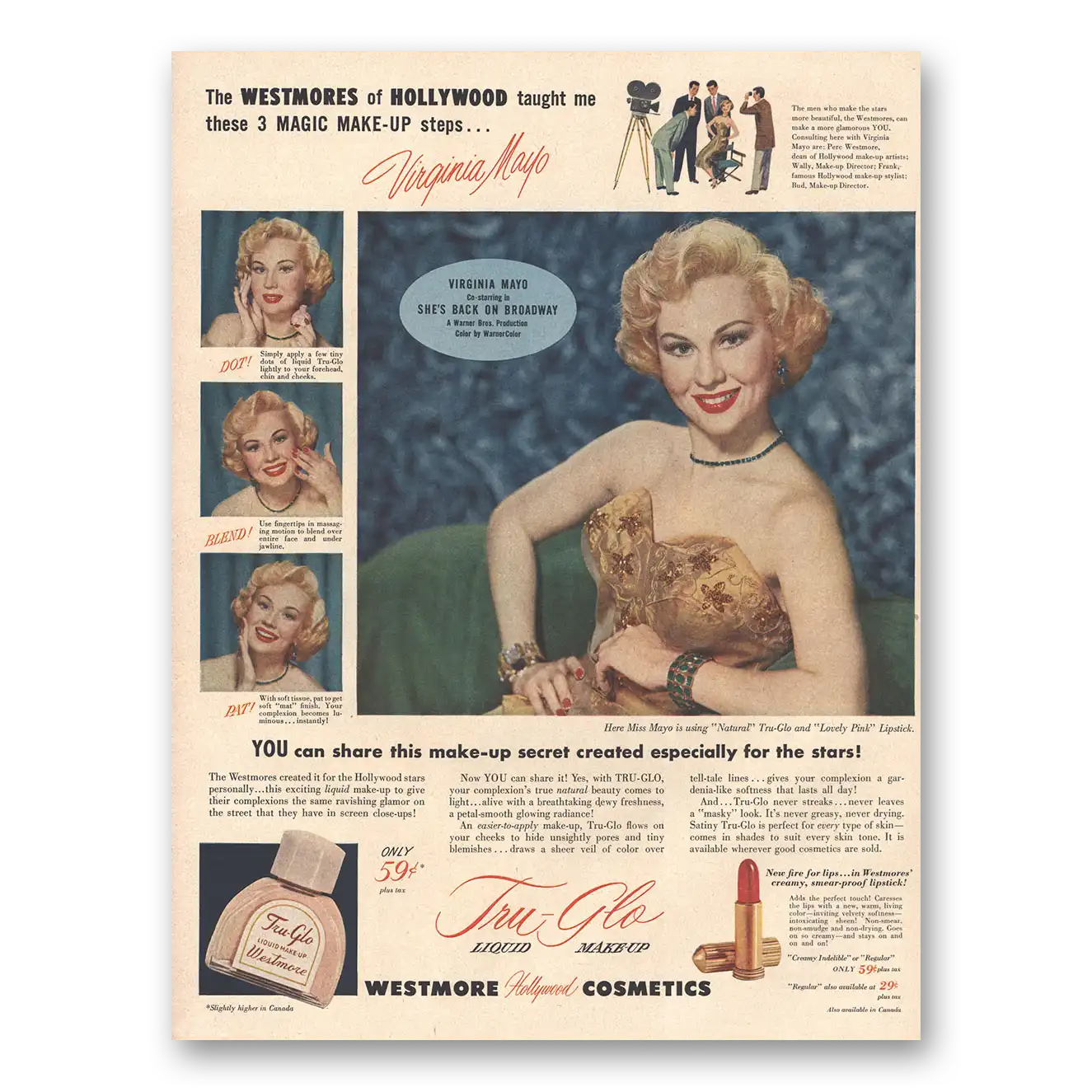 1953 Westmore Hollywood Cosmetics Print Ad | Virginia Mayo