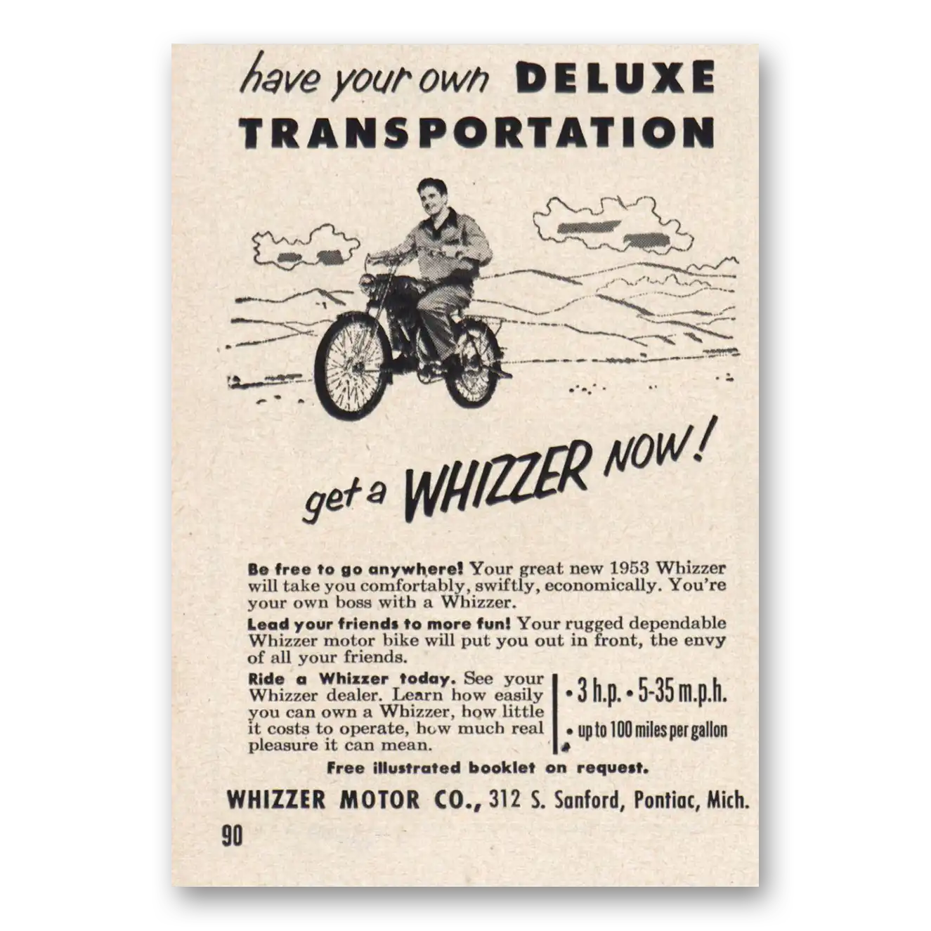 1953 Whizzer Motorbike Print Ad | Deluxe Transportation