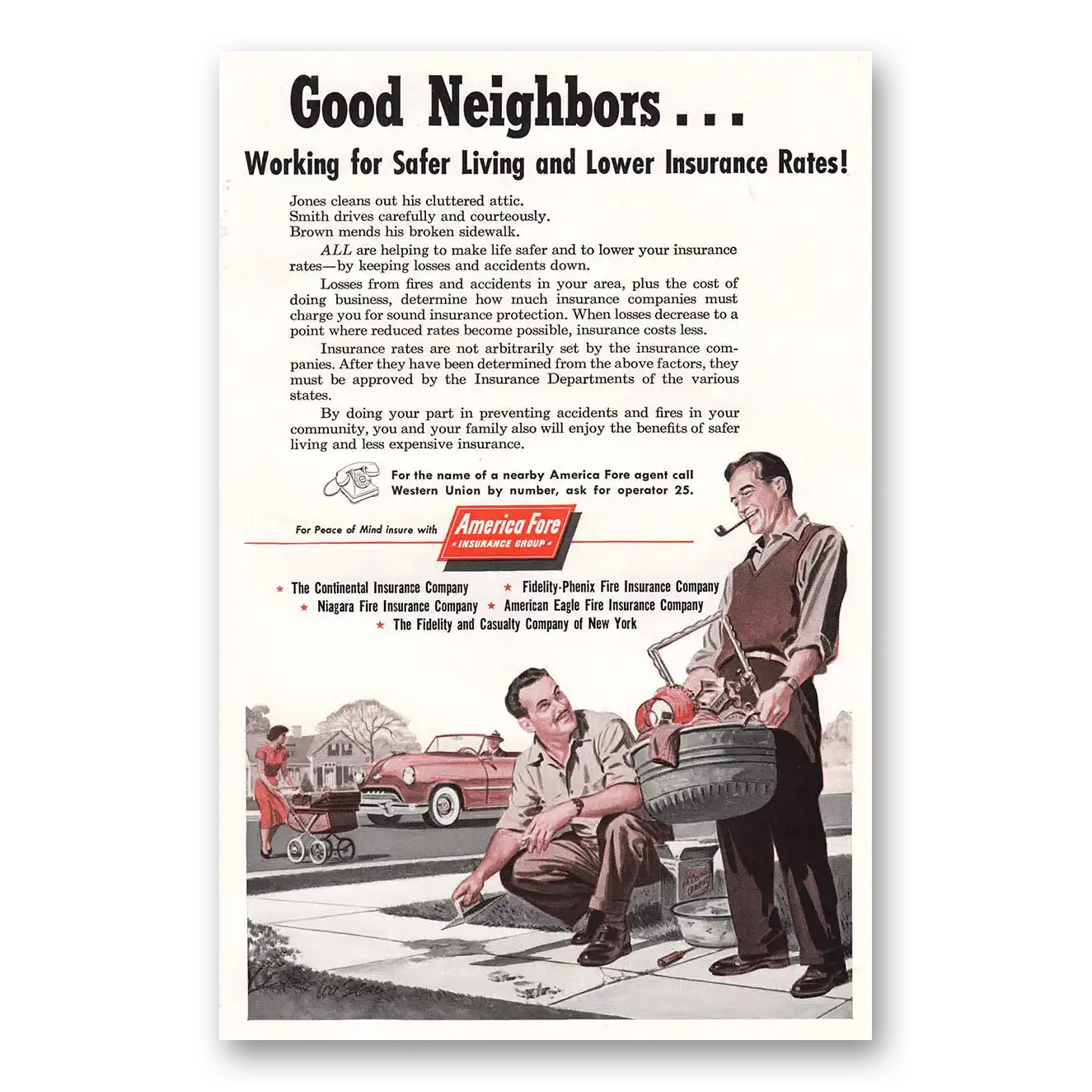 1954 America Fore Insurance Print Ad | Good Neighbors