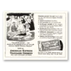 This is an original 1954 American Express Travelers Cheques print ad published by American Express.