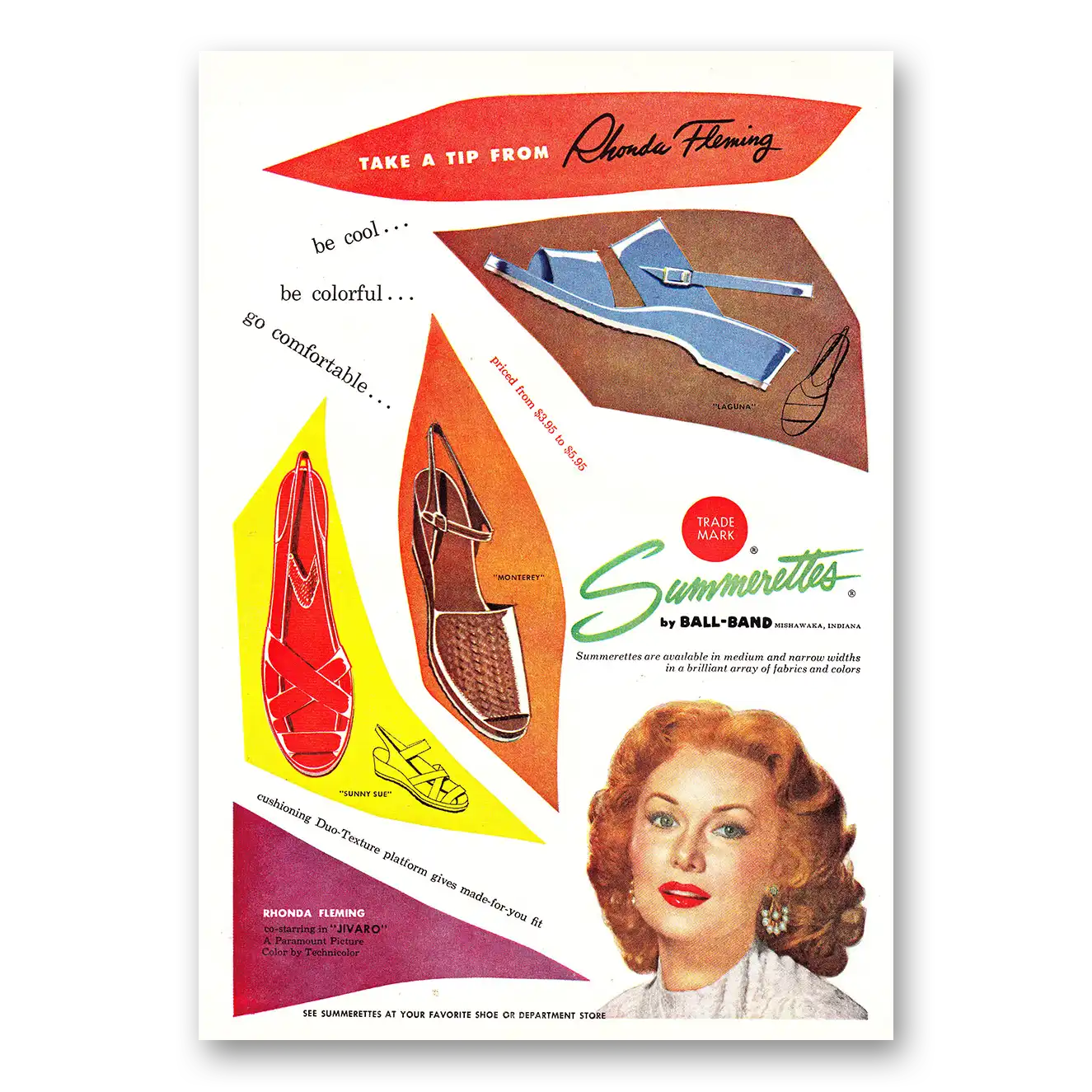 1954 Ball Band Shoes Print Ad | Rhonda Fleming
