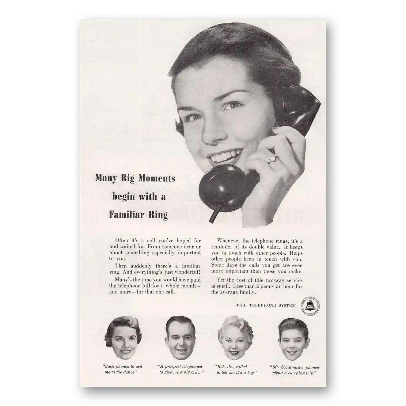 1954 Bell Telephone Print Ad | Familiar Ring