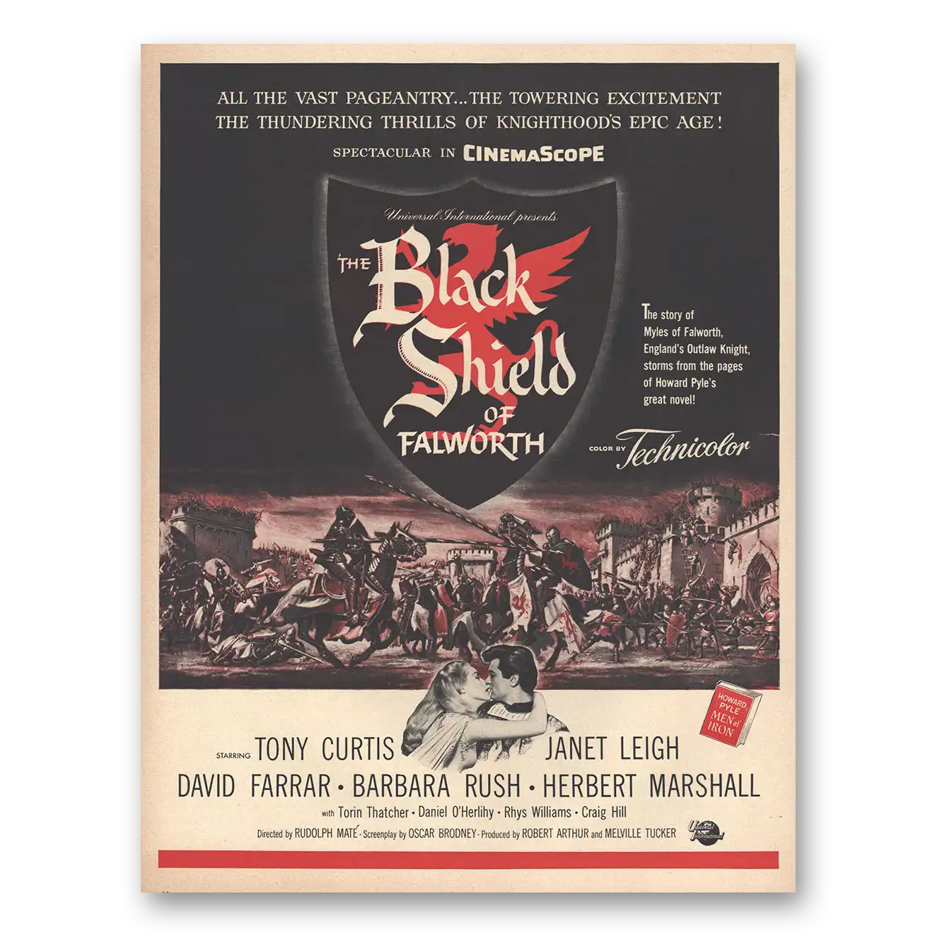 1954 Black Shield of Falworth Movie Promo Print Ad | Tony Curtis