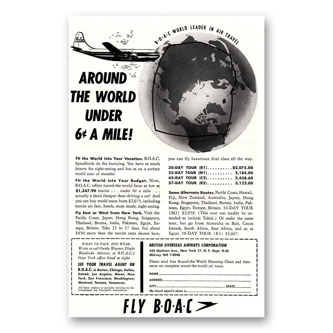 1954 British Airways BOAC Print Ad | Around World