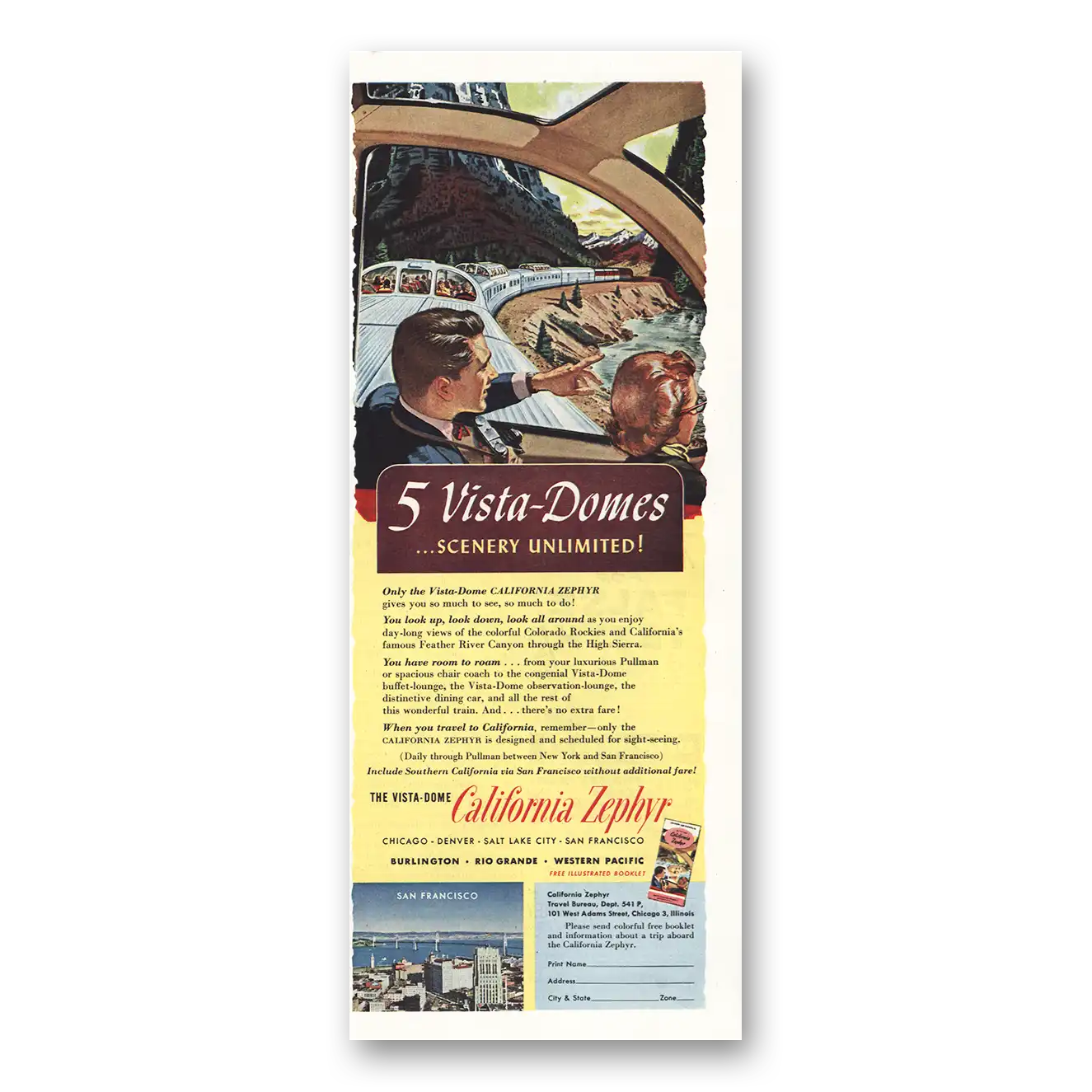 1954 California Zephyr Print Ad | Vista Domes