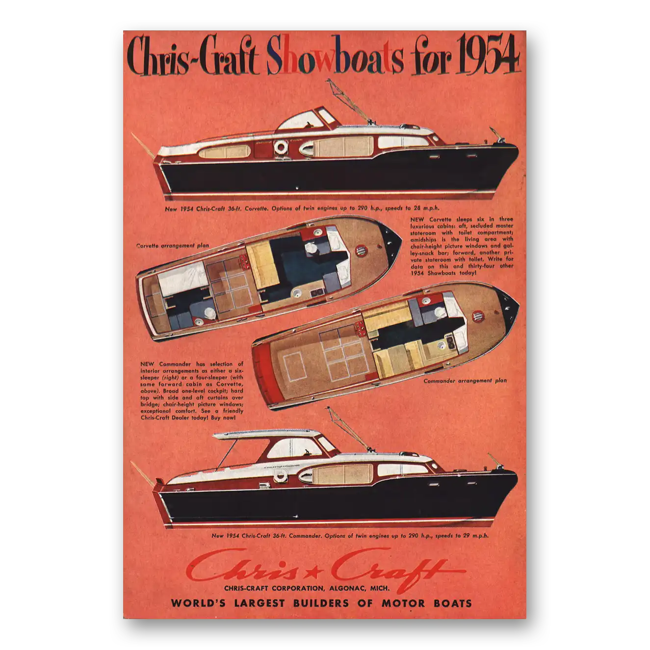 1954 Chris Craft Print Ad | Showboats For Corvette, Commander