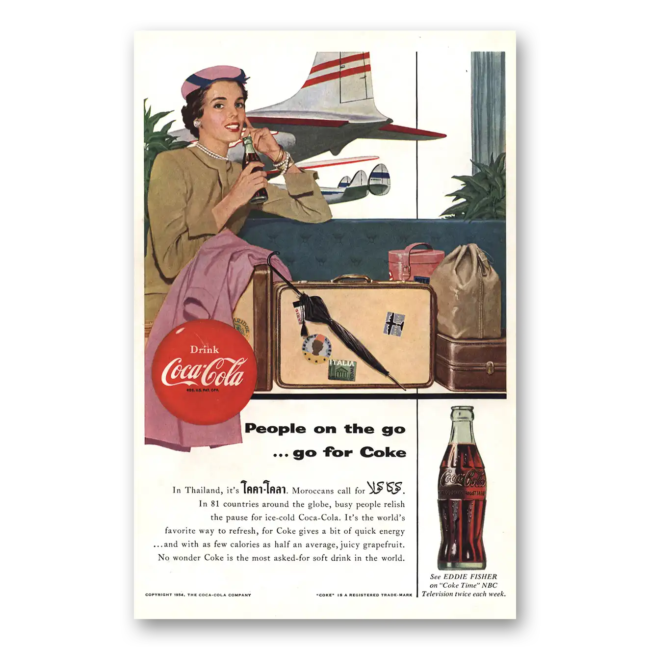 1954 Coca Cola Print Ad | People On Go Airplane, Luggage