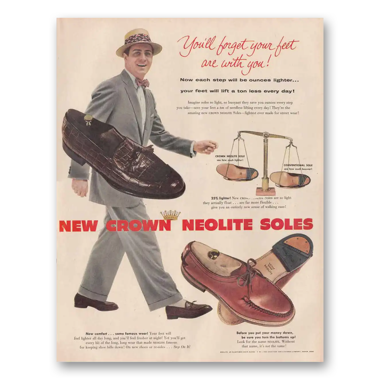 1954 Crown Neolite Soles Print Ad | Forget Your Feet