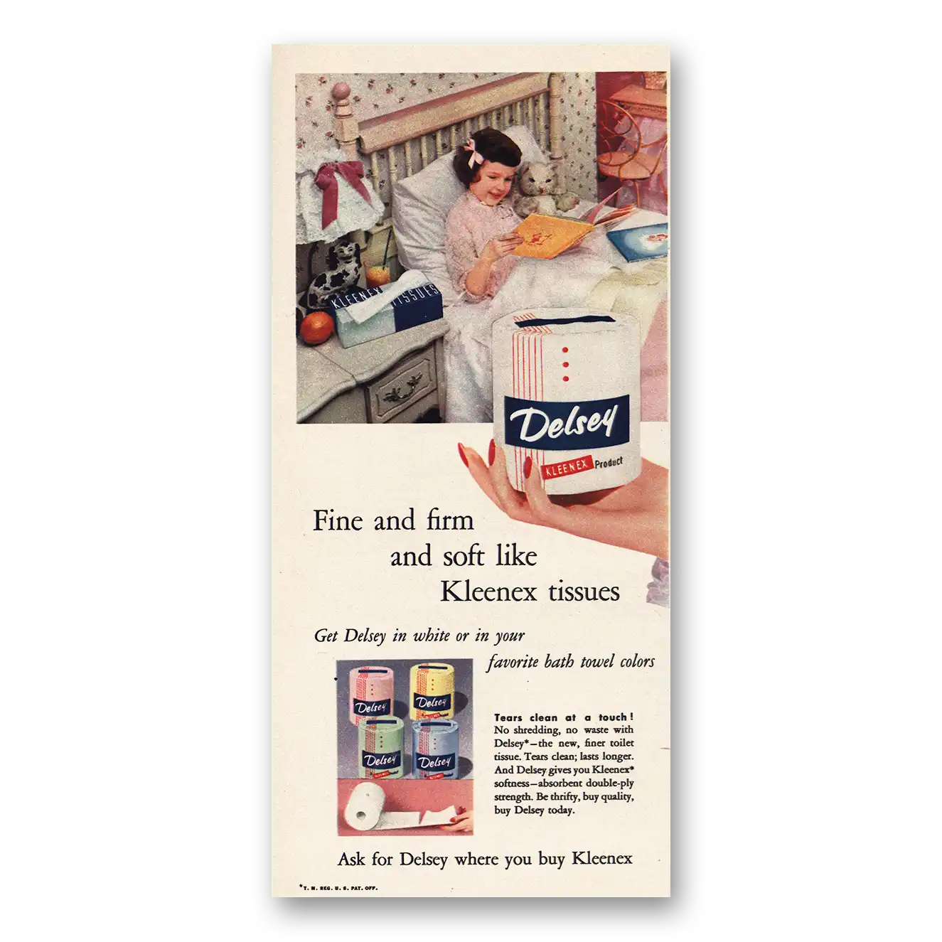1954 Delsey Toilet Tissue Print Ad | Fine And Firm