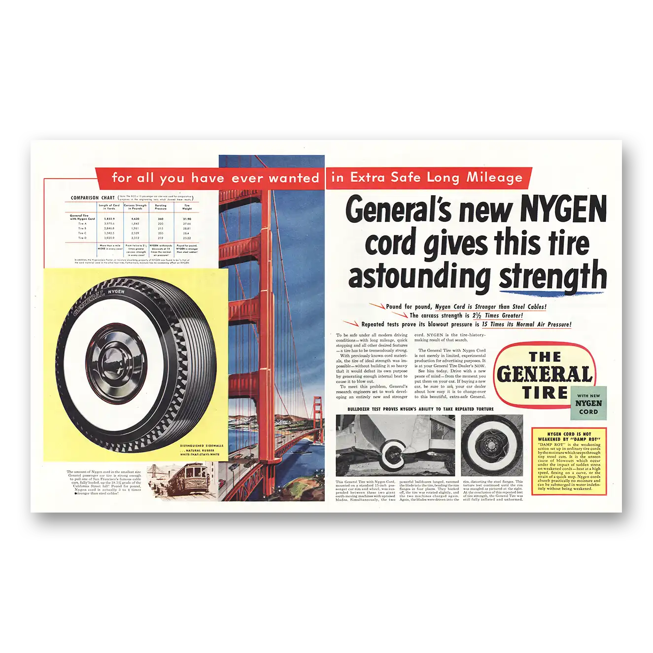 1954 General Tire Print Ad | Nygen Cord Golden Gate