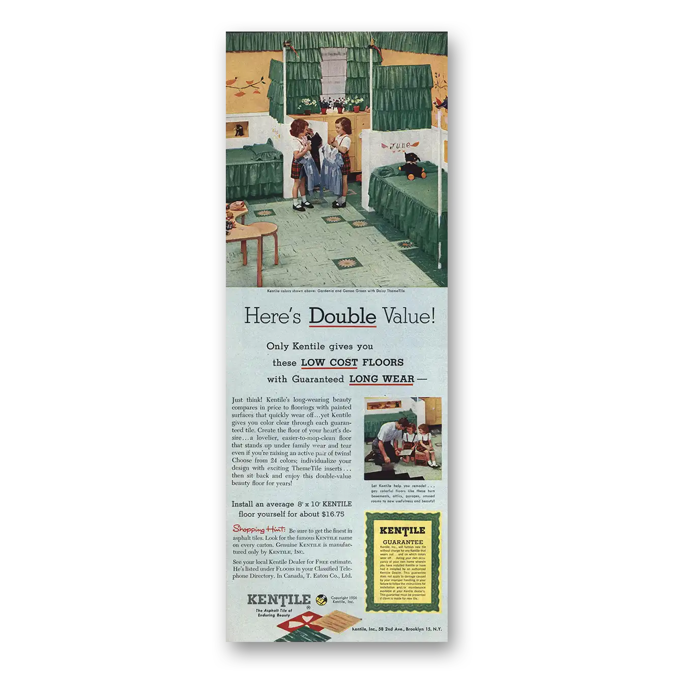 1954 Kentile Flooring Print Ad | Flooring Double Value Twins