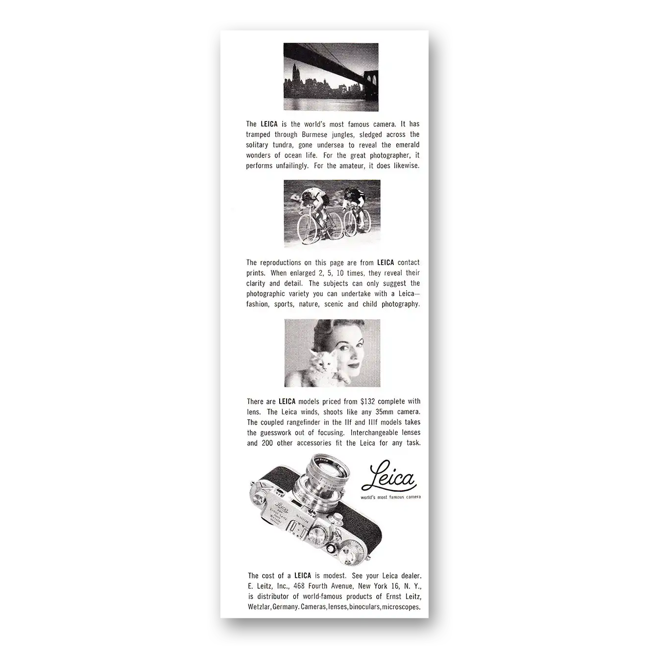 1954 Leica Cameras Print Ad | Bridge Bicyclists