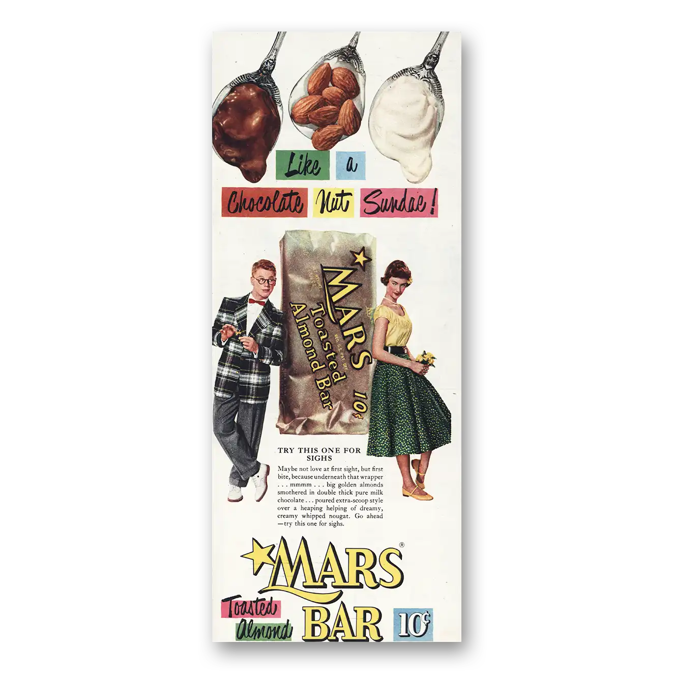 1954 Mars Bar Print Ad | Try This One For Sighs
