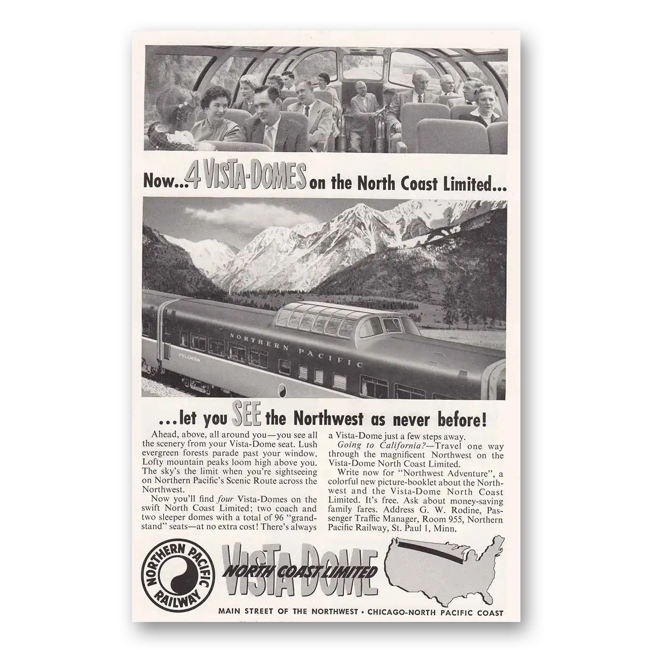 1954 Northern Pacific Railway Print Ad | Vista Domes