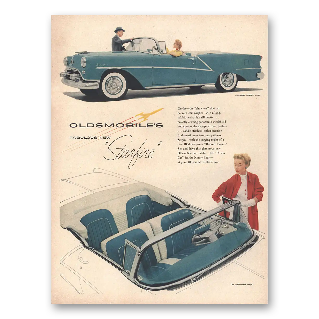 This is an original 1954 Oldsmobile Starfire print ad published by Oldsmobile.
