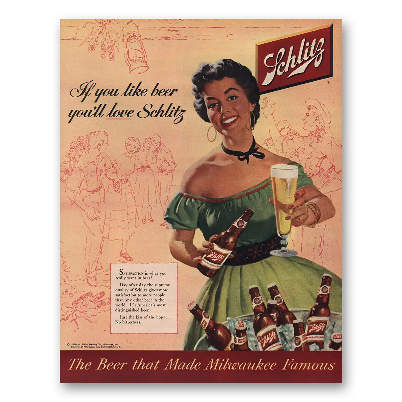 1954 Schlitz Beer Print Ad | If You Like Beer You’ll Love Schlitz