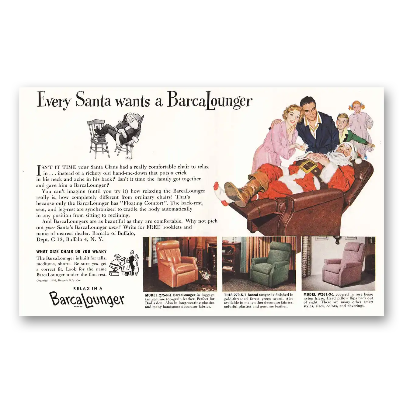 1955 BarcaLounger Print Ad | Every Santa Wants