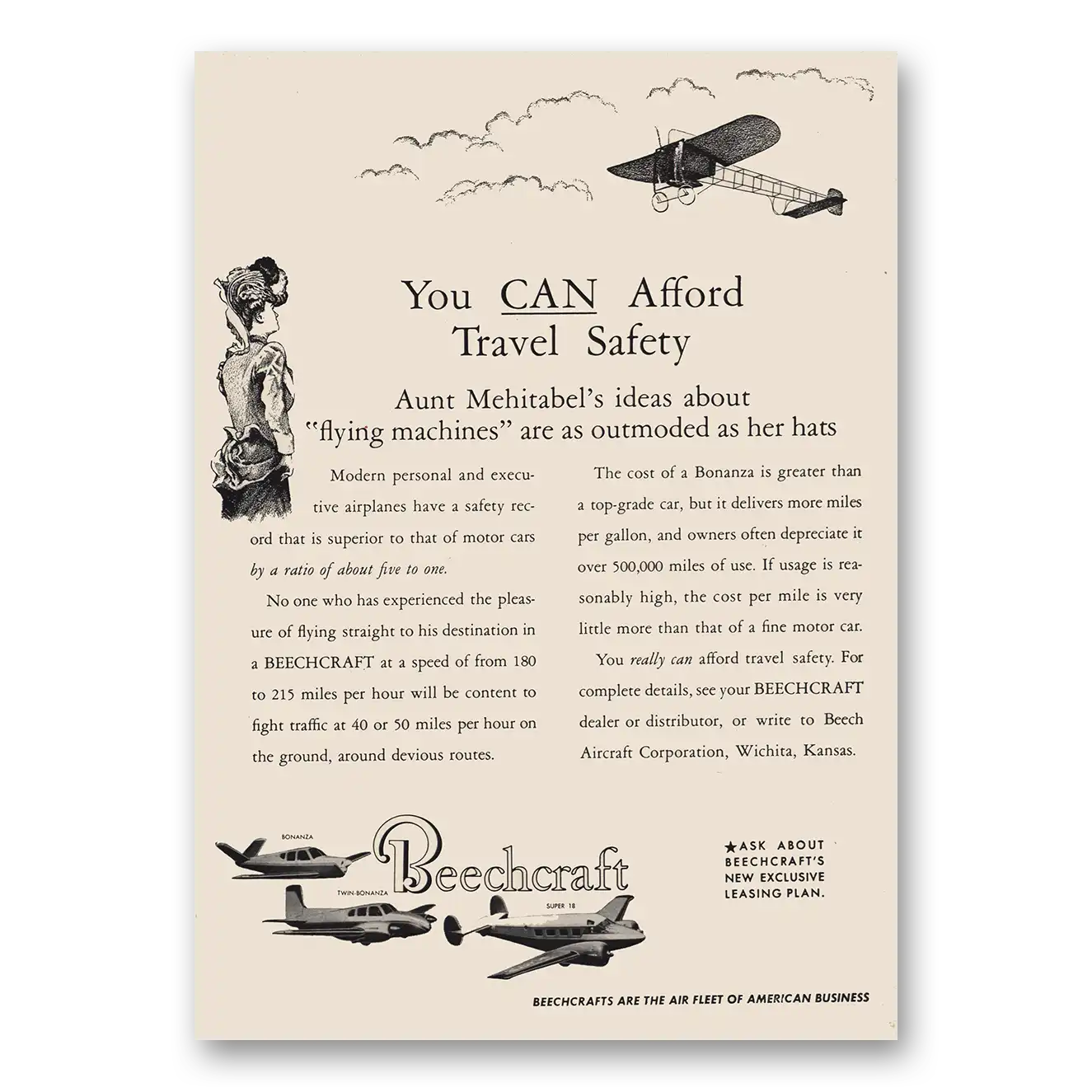 1955 Beechcraft Print Ad | Aunt Mehitabel