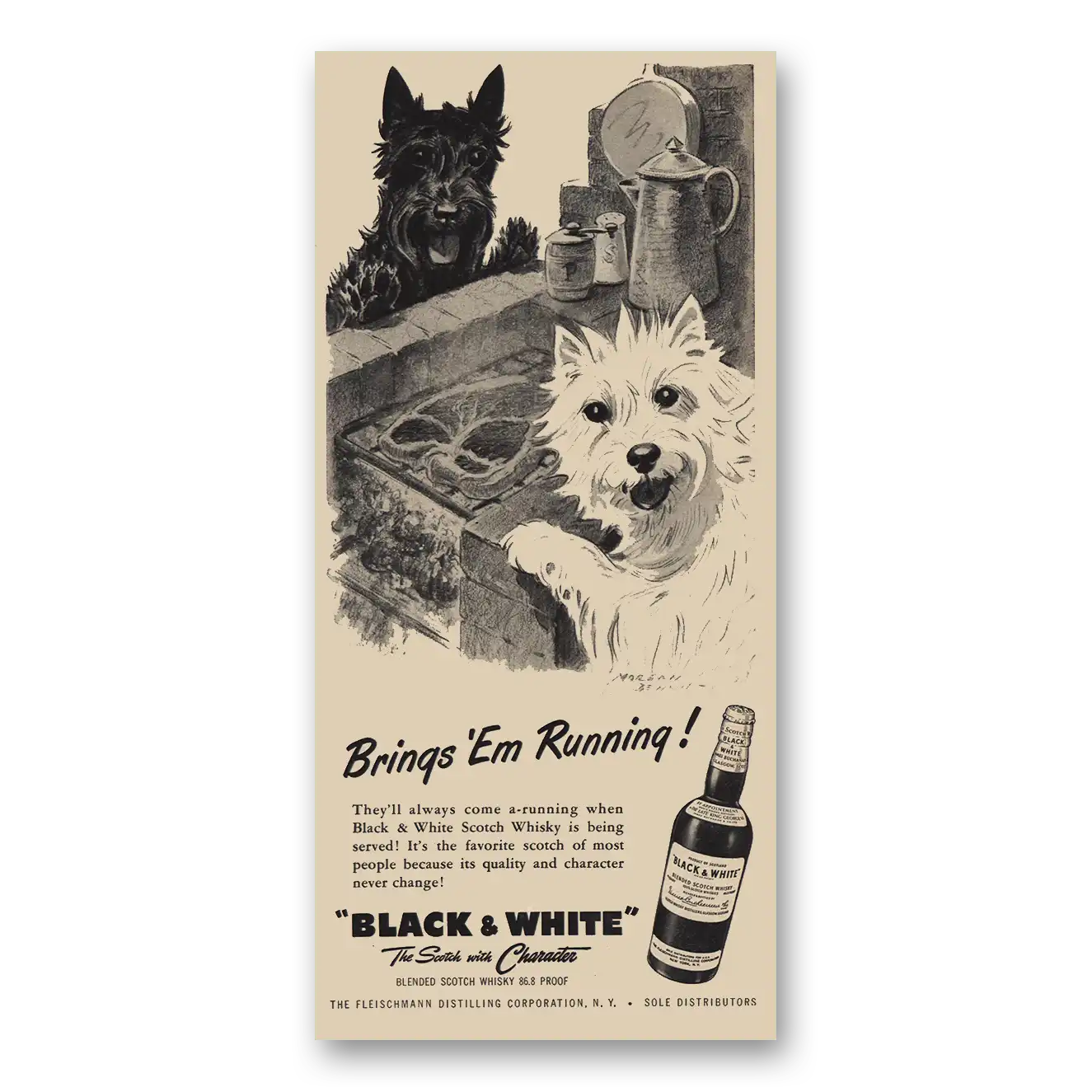 1955 Black and White Scotch Print Ad | Brings Em Running