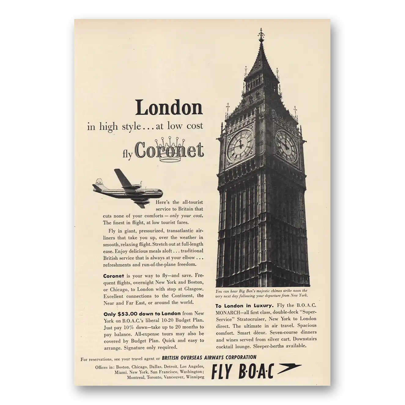 1955 British Airways BOAC Print Ad | London