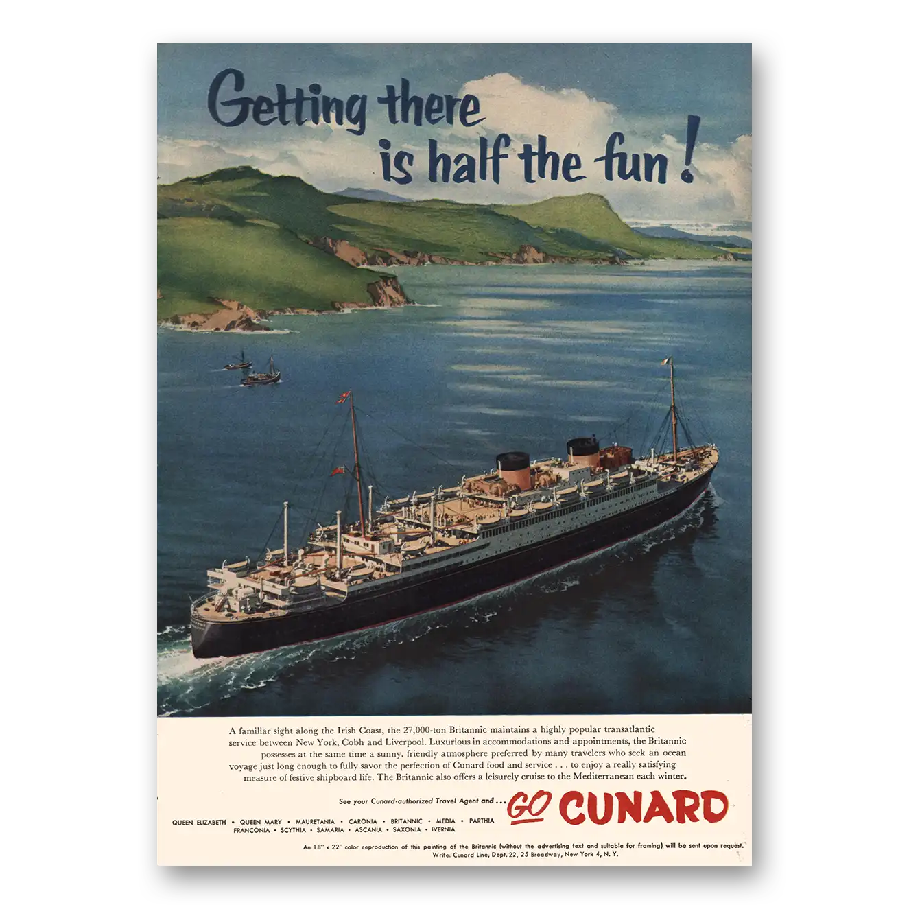 1955 Cunard Print Ad | Along The Irish Coast1955 Cunard Print Ad | Along The Irish Coast