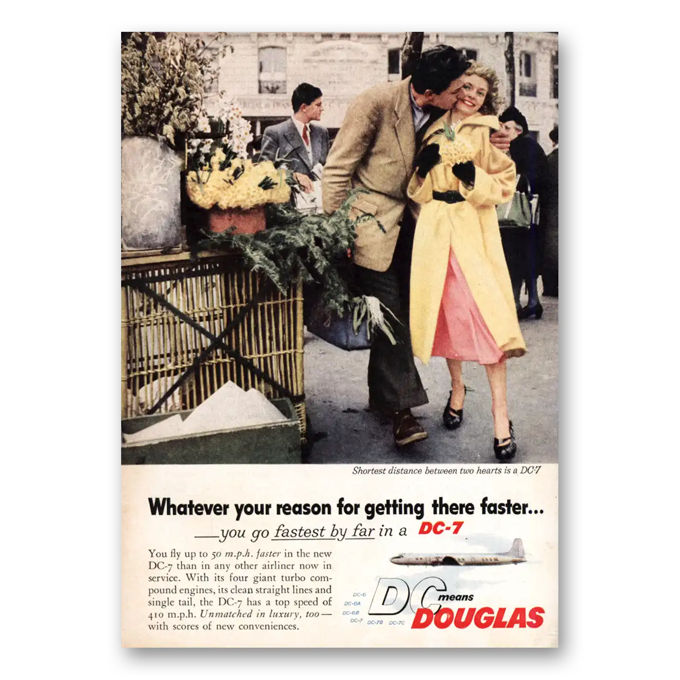 1955 Douglas DC7 Print Ad | 50 Mph Faster