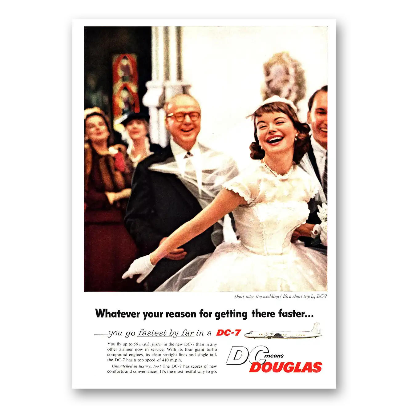 1955 Douglas DC7 Print Ad | Miss Wedding