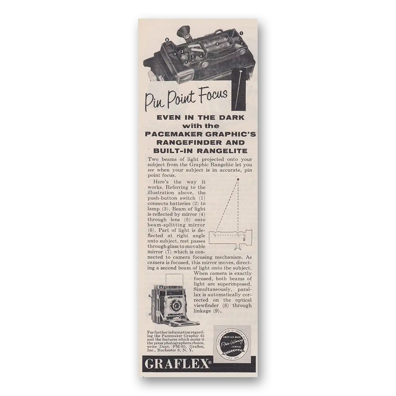 1955 Graflex Cameras Print Ad | Pacemaker Graphics