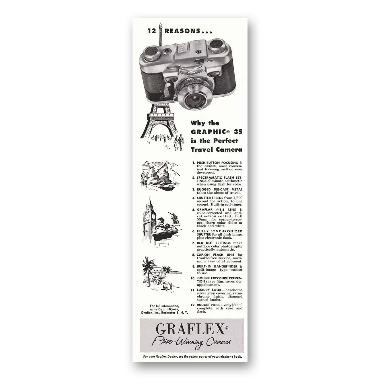 1955 Graflex Graphic 35 Camera Print Ad | Travel Camera1955 Graflex Graphic 35 Camera Print Ad | Travel Camera