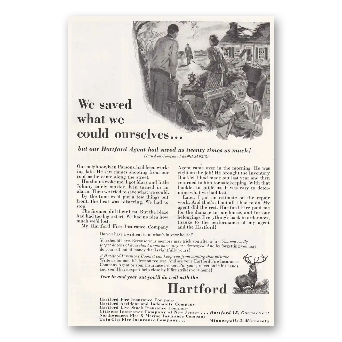 This is an original 1955 Hartford Insurance print ad published by Hartford Insurance.