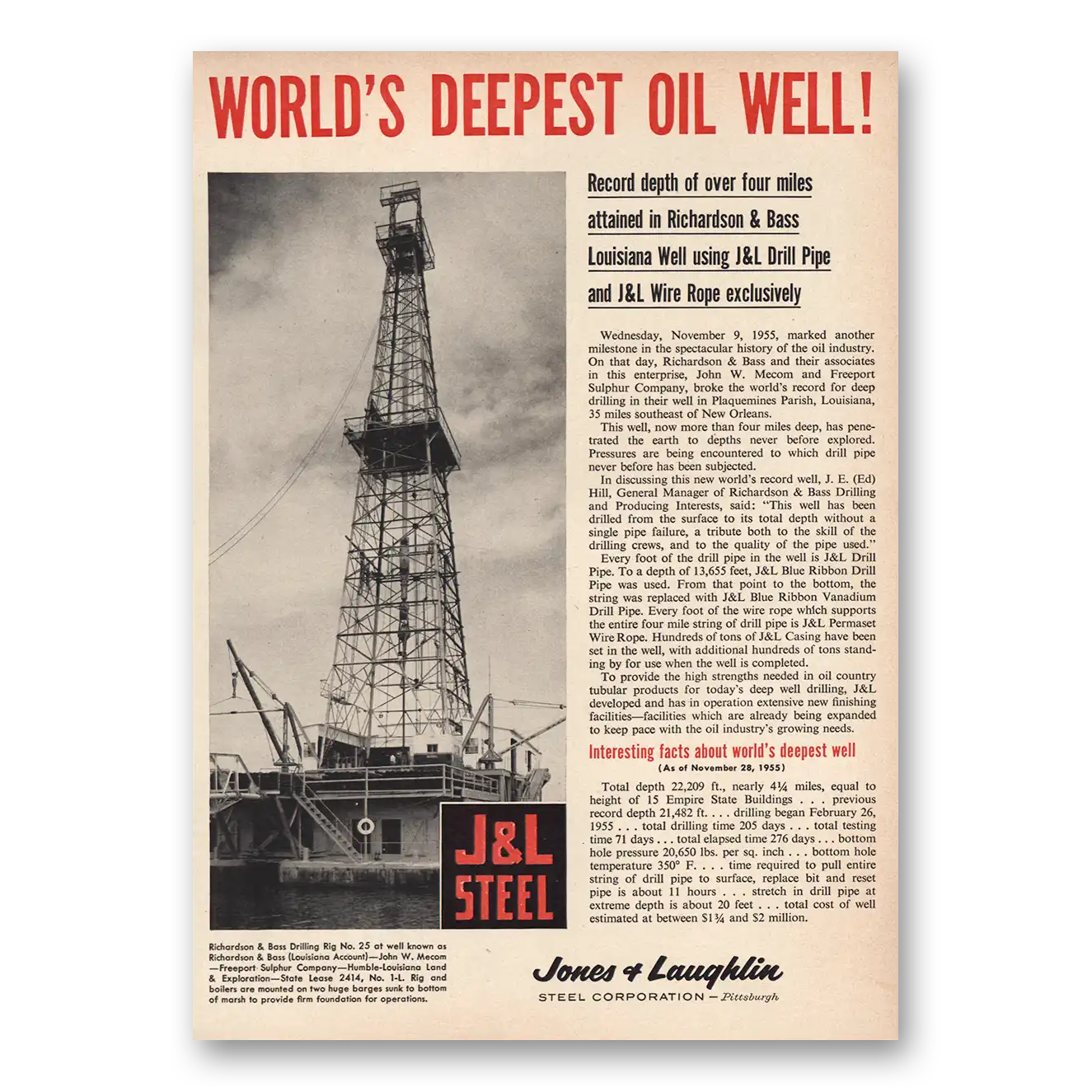 1955 J & L Steel Print Ad | Worlds Deepest Oil Well