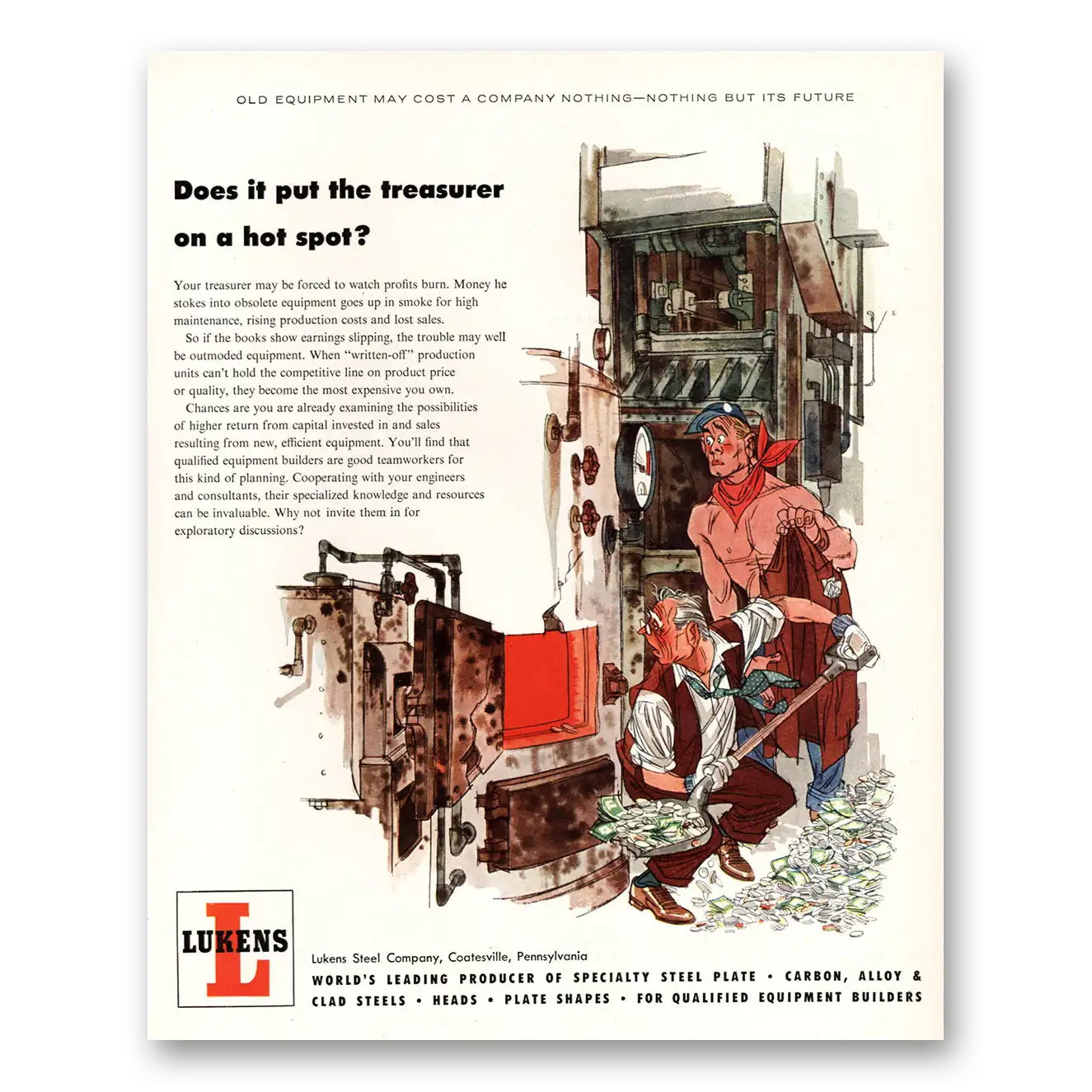 1955 Lukens Steel Print Ad | Treasurer