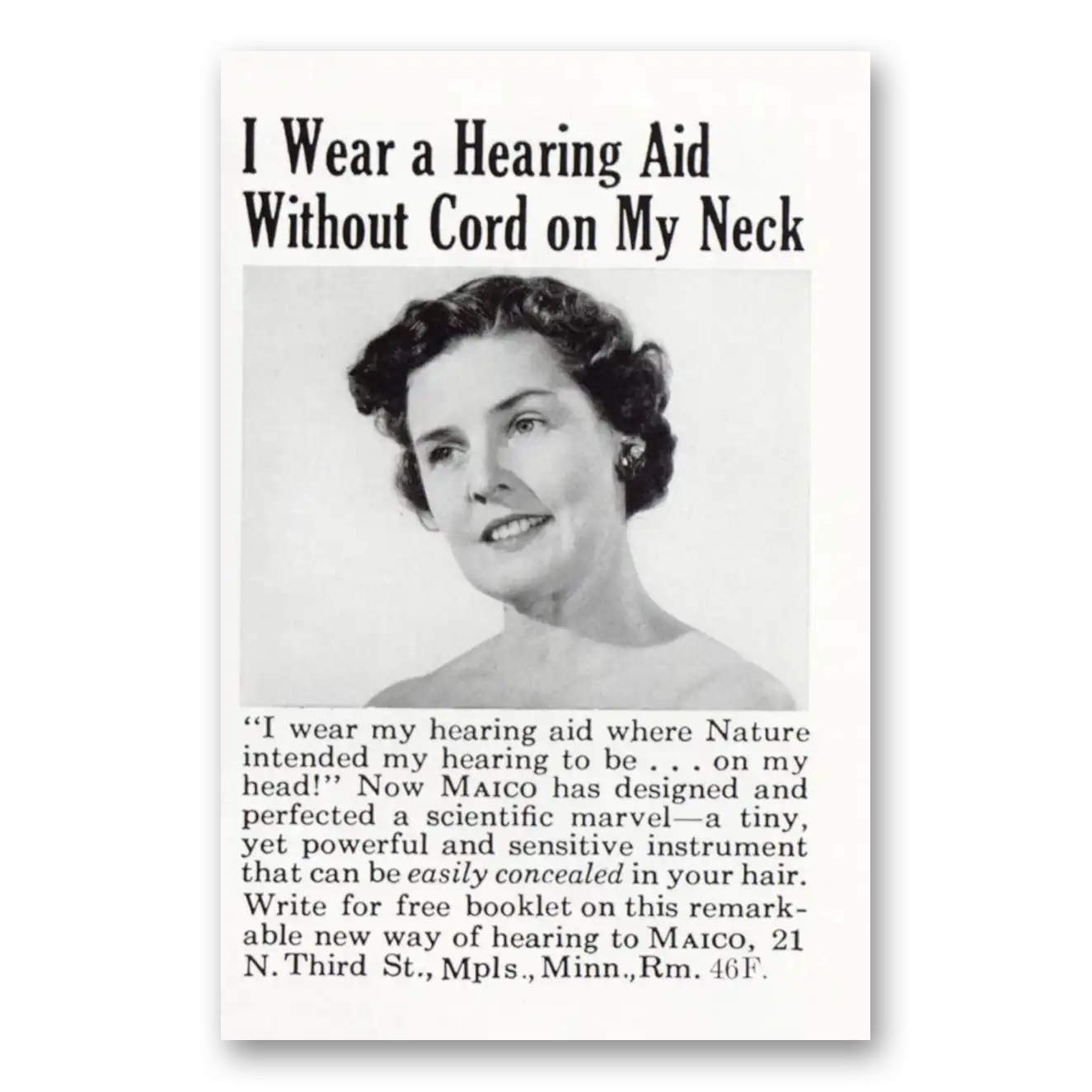 1955 Maico Hearing Aid Print Ad | Without Cord