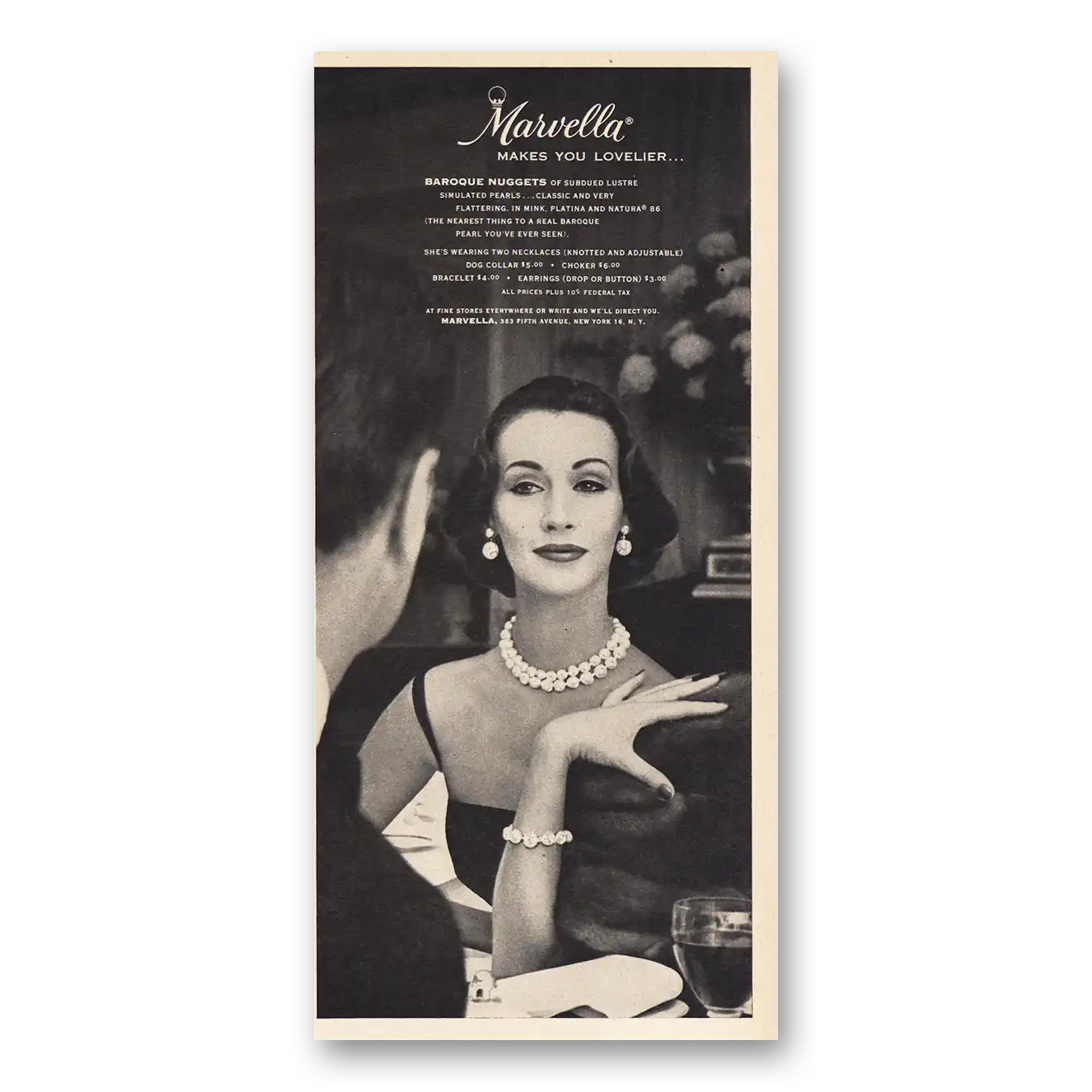 1955 Marvella Jewelry Print Ad | Makes You Lovelier