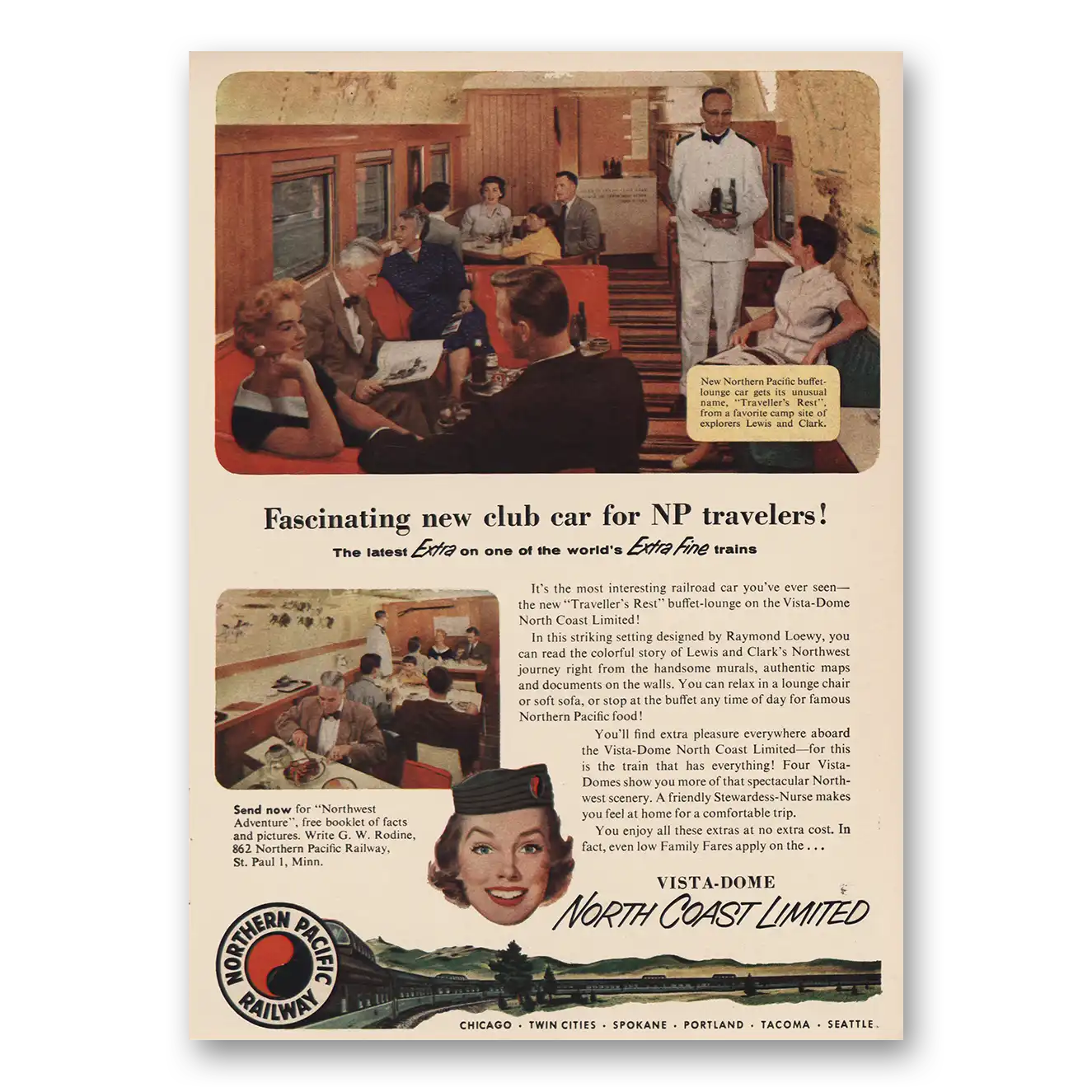 1955 Northern Pacific Railway Print Ad | Fascinating New Club