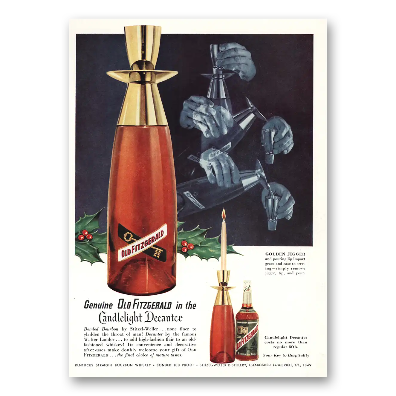 1955 Old Fitzgerald Print Ad | Candlelight Decanter