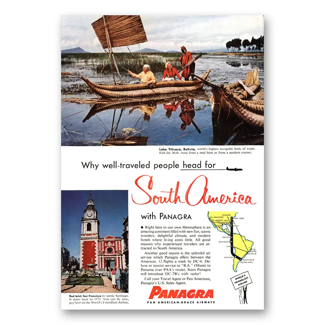 1955 Panagra Airlines Print Ad | Lake Titicaca