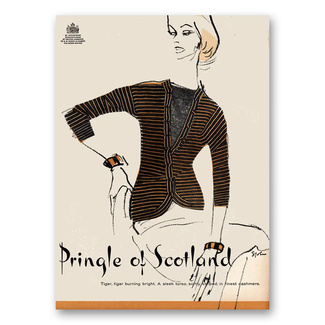 1955 Pringle of Scotland Fashion Print Ad | Tiger Burning Bright