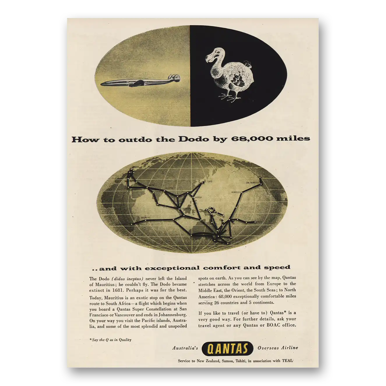 1955 Qantas Airlines Print Ad | Outdo The Dodo