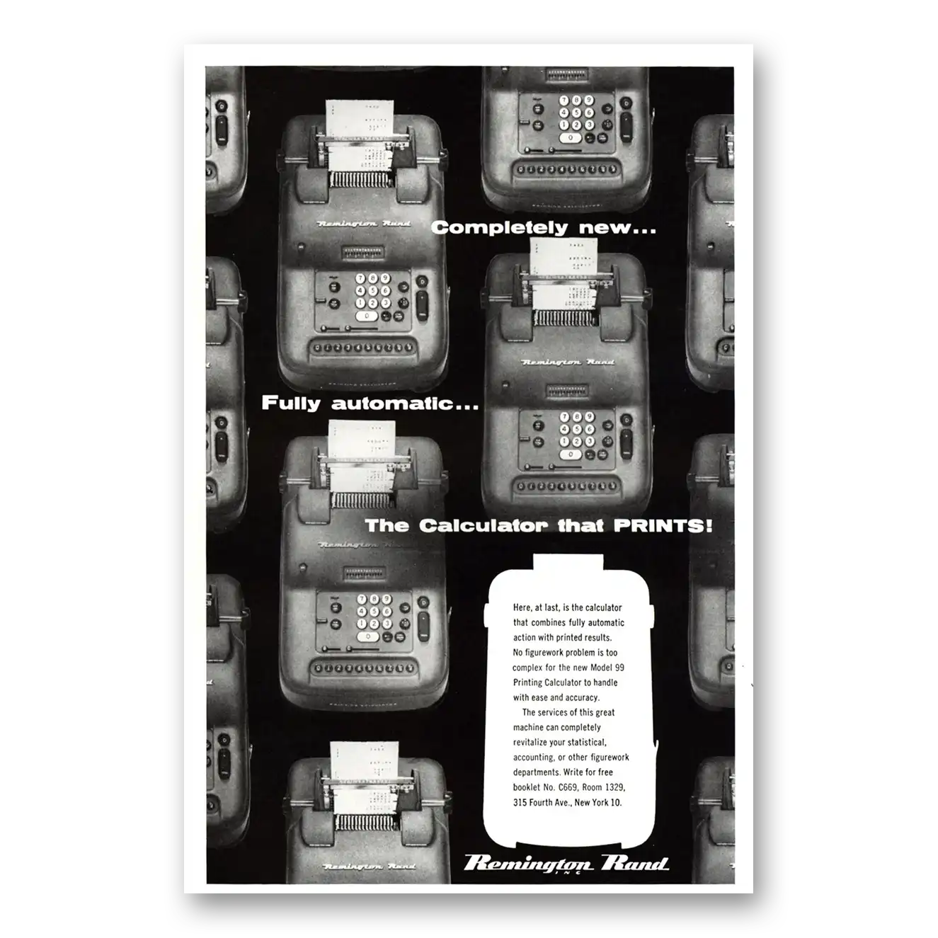 1955 Remington Rand Printing Calculator Print Ad | Calculator Prints